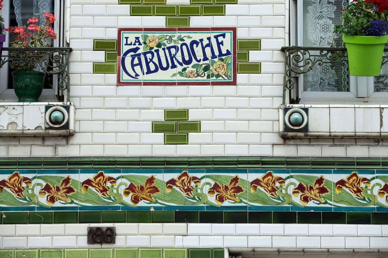 Wikipedia nous dit caburoche désigne un petit abri de vigneron ou une maisonnette de vigne. Il semble que les céramiques utilisées pour sa décoration proviennent de l'ancienne Tuilerie Champion alors située dans le quartier de La Grange (actuelle rue de la Tuilerie).
