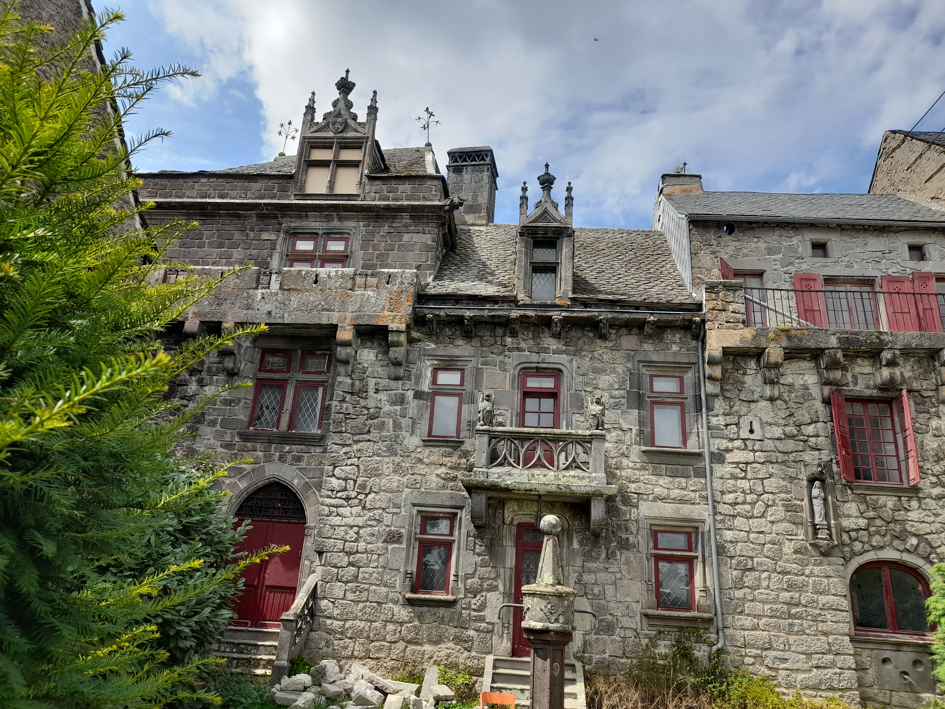 Manoir Sainte-Marie-des-Remparts Cette bâtisse du XVe siècle située à proximité des remparts est un bel exemple de la manière dont les goûts personnels d'un propriétaire déterminent en fin de compte la décoration d'une propriété. Si vous regardez la façade de la place de la Prairie, vous vous demanderez peut-être comment quelqu'un a pu dépenser autant d'argent pour un excès de décorations dans des temps aussi incertains que pendant la guerre contre les Anglais. Cet édifice de trois étages présente de nombreuses portes et fenêtres à meneaux qui s'ouvrent sur des balcons bordés de créneaux ou de balustrades de style gothique tardif. Les fenêtres de toit sont également richement décorées dans le style Renaissance. Un arc de couronne est orné de pinacles. Adresse Rue de l'Abbé Blot 6-12 63610 Besse-et-Saint-Anastaise
